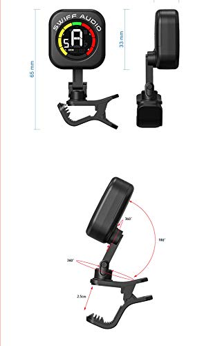 Specification: Digitaal mini-stemapparaat tuner voor ukelele gitaar, basviool met clip, chroomatisch, zwart