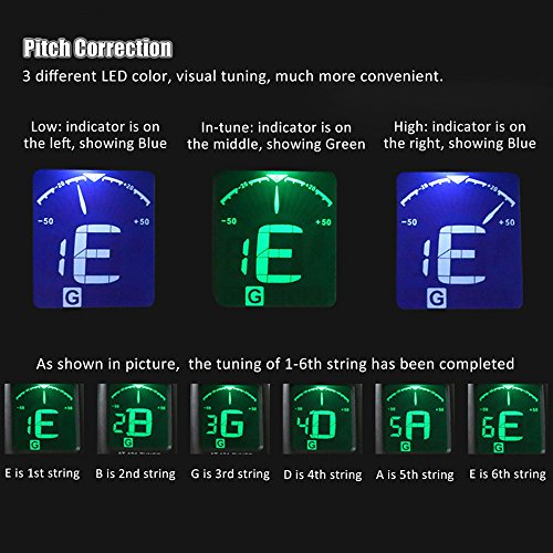 Specification: Festnight AT-101 Mini-clip-on-tuner, digitaal, met draaibare clip, hoge gevoeligheid, voor gitaar, chromatische bas…